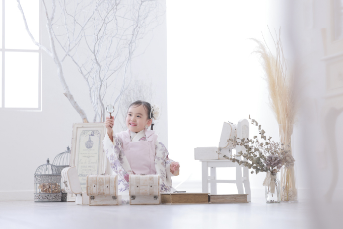 撮影は、お子様の雰囲気に合わせて背景や小物などを合わせております。事前にご要望等ある場合にはお伺いをし、お客様の思い描く七五三の想い出になるようにお手伝いさせていただきます。