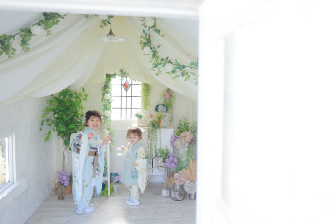 天使の森全店舗にて展開の『お庭フォト®』。年間通してロケーション撮影をお楽しみいただけます。