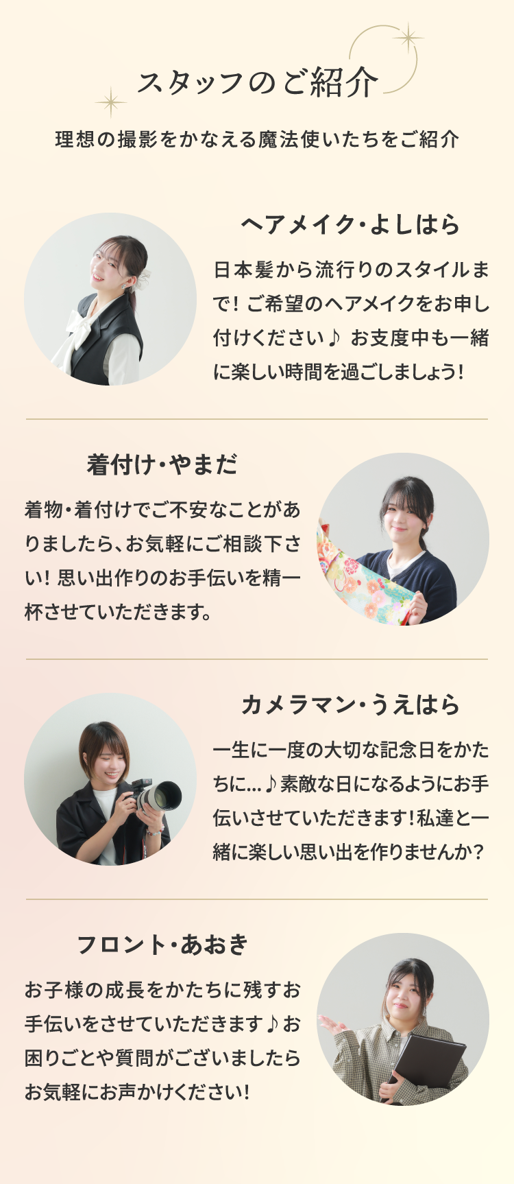 ※撮影・お支度内容の追加などにより前後する場合がございます。