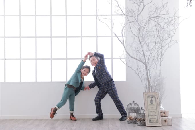 家族撮影無料!ご本人のみの撮影やごきょうだい・ご家族様皆様のご集合撮影まで幅広くお応えします。わんちゃんなどのペットと一緒の撮影もお受けできます。また、ご希望のお持込み小物で撮影ができます。(小物お持ち込み無料)