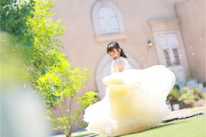 店舗ごとにテーマが異なり、特色あふれる解放感いっぱいのお庭です。「お外行こうか!」の言葉に、お子様たちはもちろん大人も自然と笑顔に。その時々の日照具合やお客様の雰囲気・ご要望に合わせて、ベストな撮影場所をご提案します。
