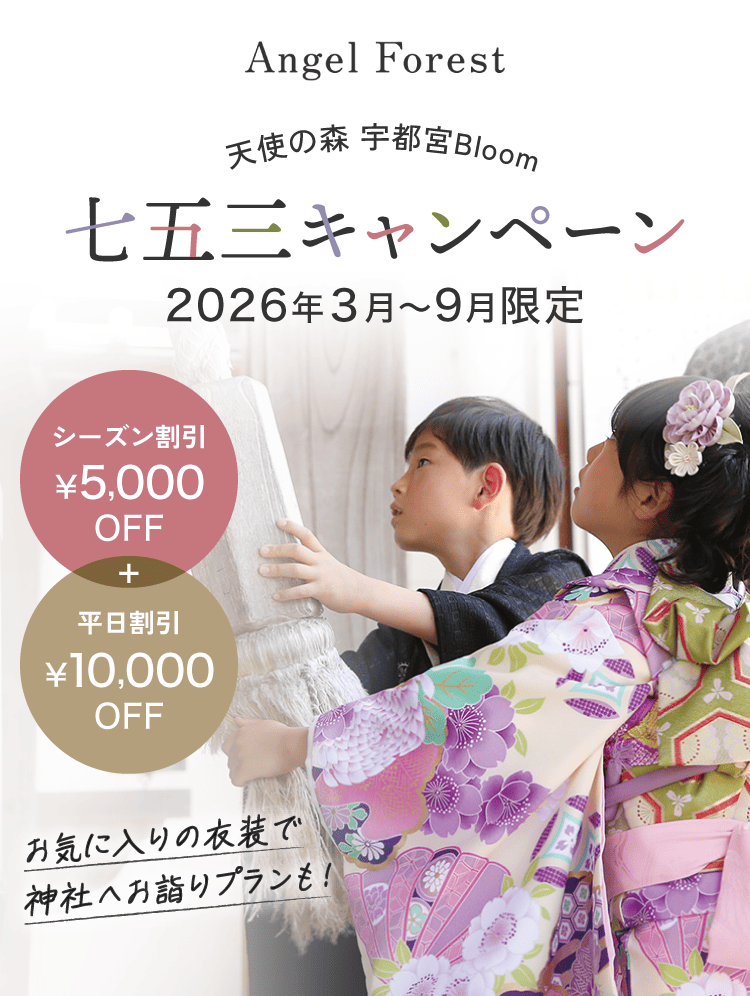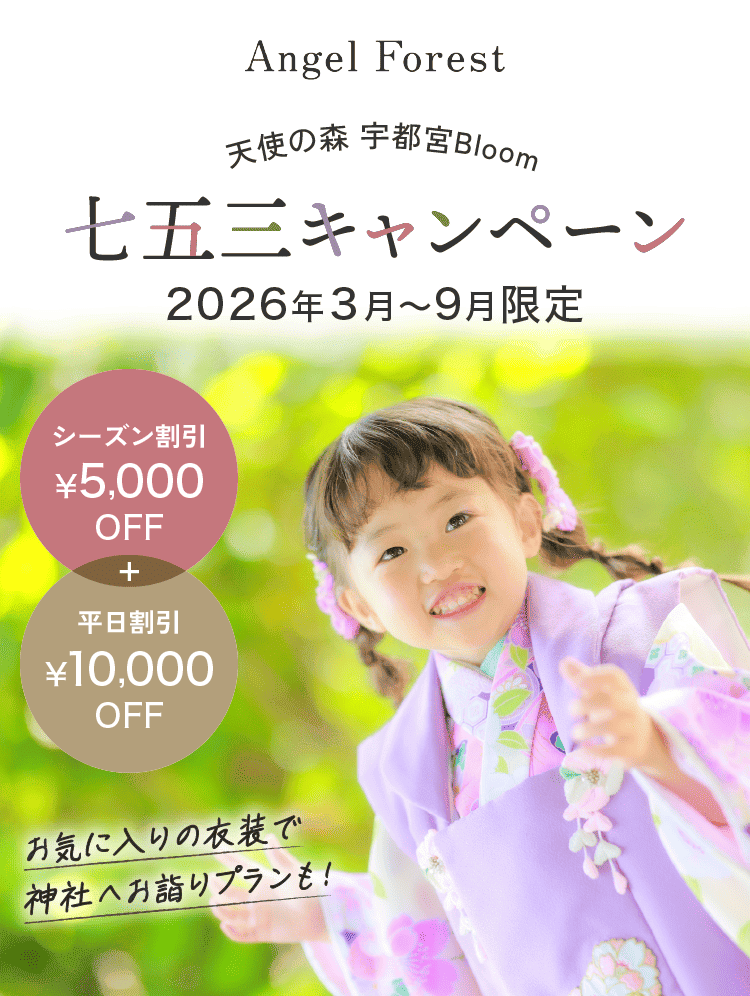 天使の森全店舗にて展開の『お庭フォト®』。年間通してロケーション撮影をお楽しみいただけます。