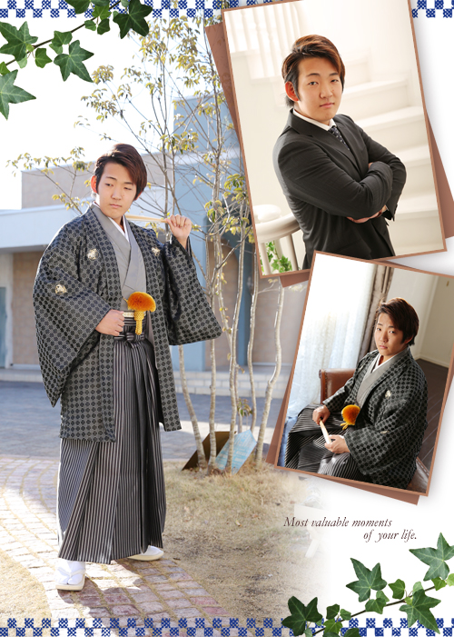 太一さん、スーツ姿と着物姿を撮影しました。