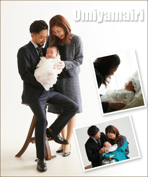 今日は大安、お宮参り撮影でご来店のいっせいくんとご家族様です。
