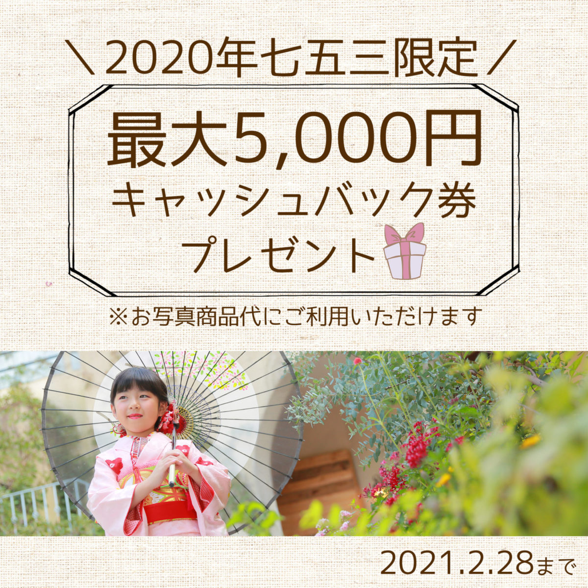 お写真商品代としてお使いいただけます「5,000円分の金券」をプレゼント