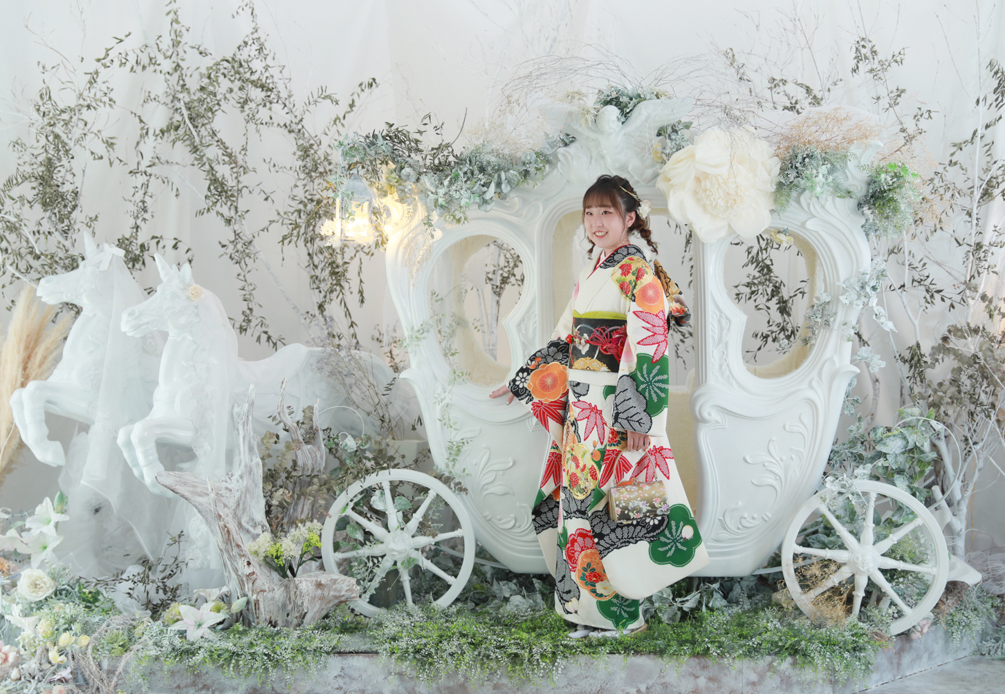 白地の振袖がとーってもよく似合っていて、