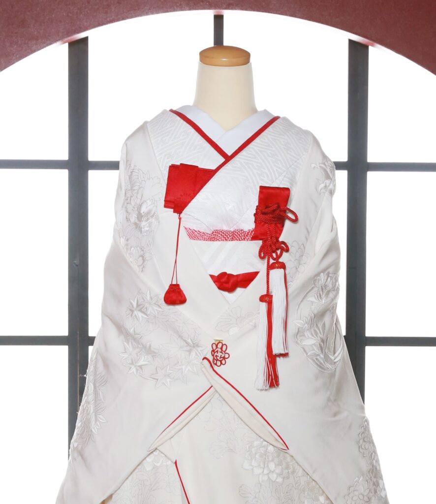 次に先ほどの白に小物やお着物に赤をたした着こなしです。