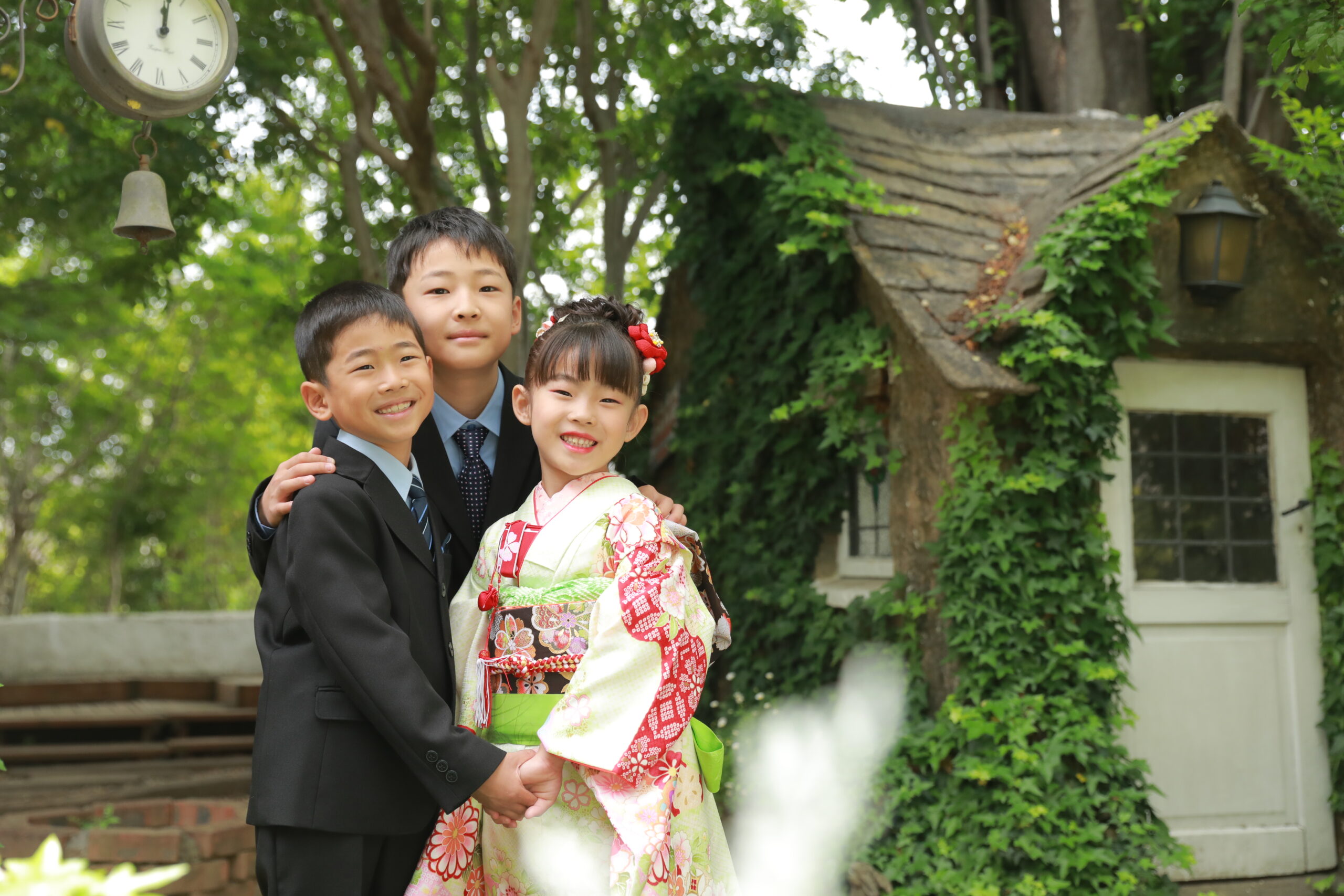 ご主役様お一人のポーズはもちろんのこと、天使の森ではご家族との集合撮影も人気です!