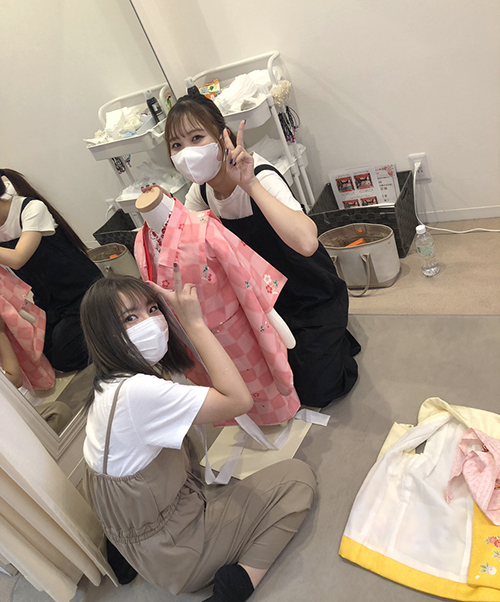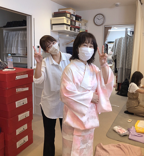 着付けのスタッフさんたちが手慣れた様子で着付けるのを見ていると