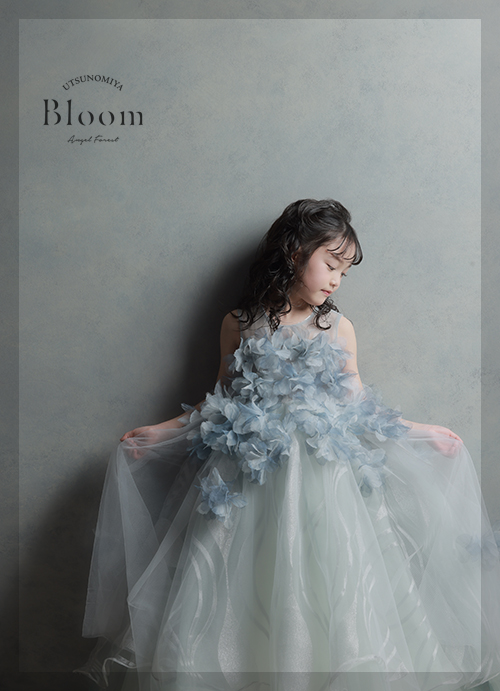 落ち着いた水色の透明感あふれるドレス。