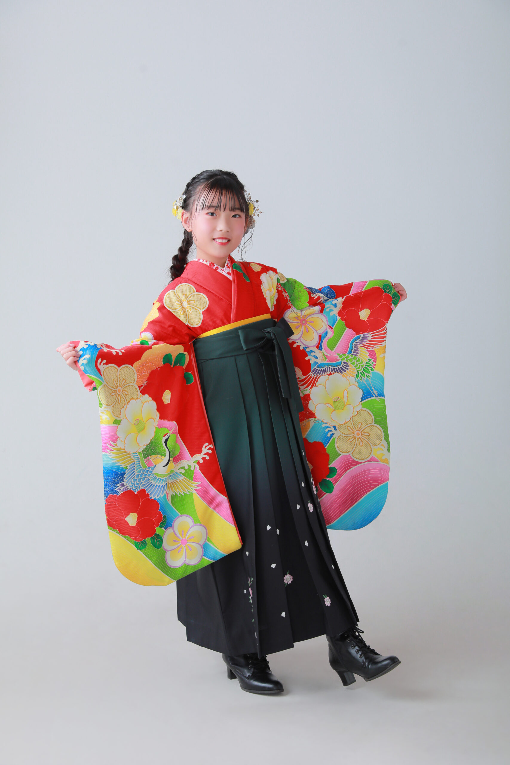 また大人っぽく黒のブーツを履いたりシンプルに草履を履いたり組み合わせは自由です♪