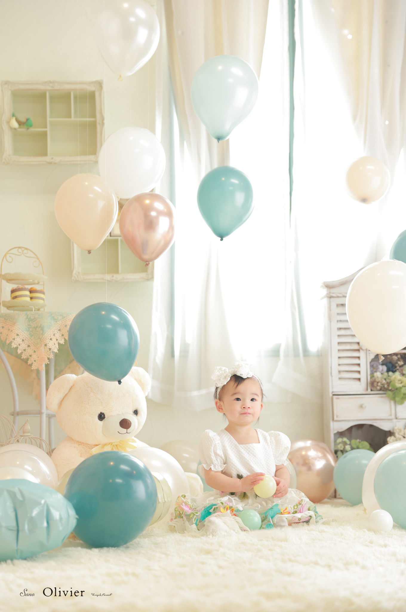今回はターコイズブルーのバルーンいっぱい背景で撮影できちゃいます!!
